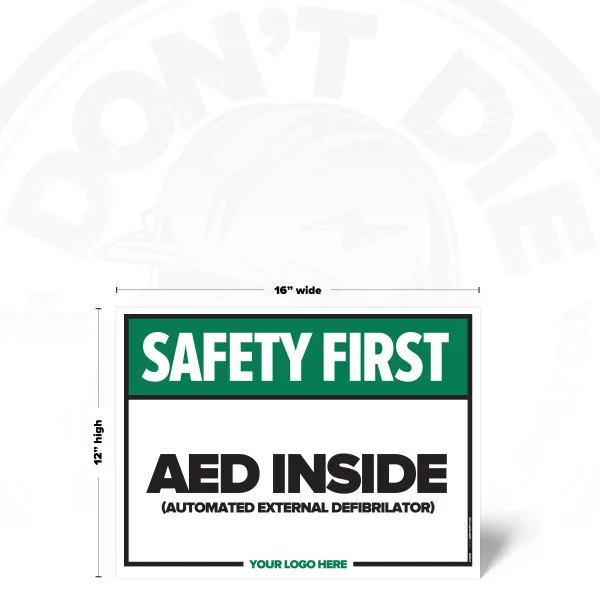 The AED INSIDE SAFETY SIGH provides clear, consistent instruction in locations where this requirement or notice applies. It helps reduce ambiguity by stating expectations plainly and consistently.