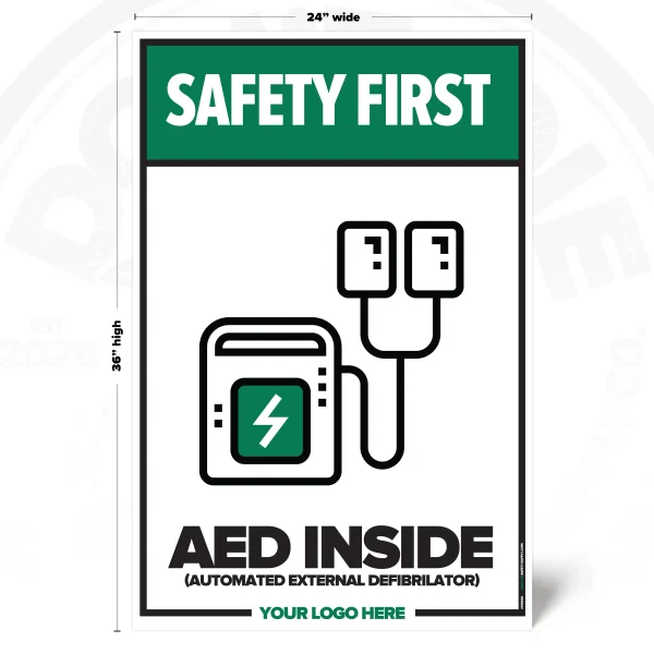 The AED INSIDE SAFETY SIGH is designed to provide clear, consistent visual guidance in environments where this message applies. It supports safer behavior by keeping the instruction visible in day-to-day operations.