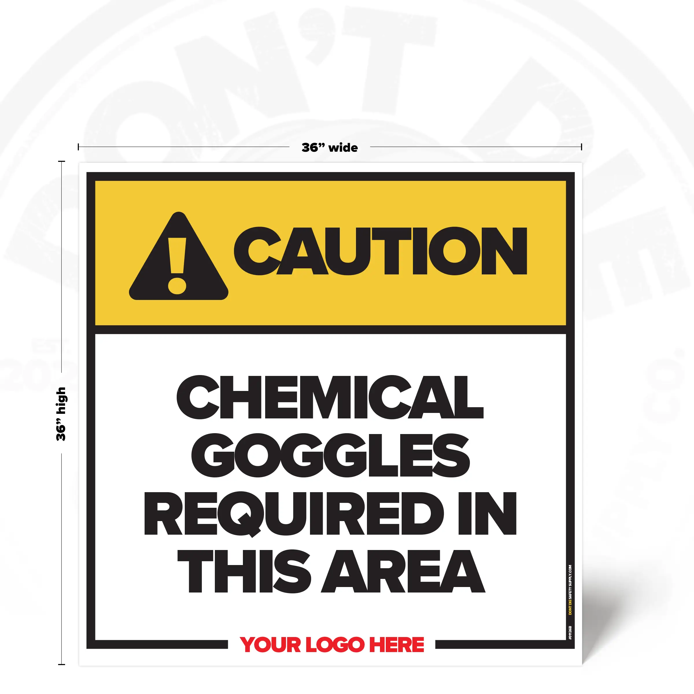 The CHEMICAL GOGGLES REQUIRED SAFETY SIGN provides clear, consistent instruction in locations where this requirement or notice applies. It helps reduce ambiguity by stating expectations plainly and consistently.