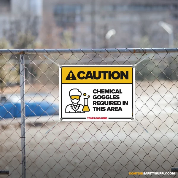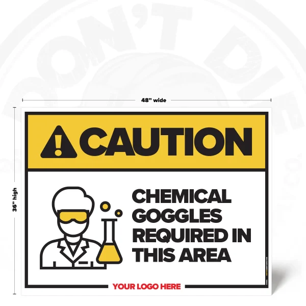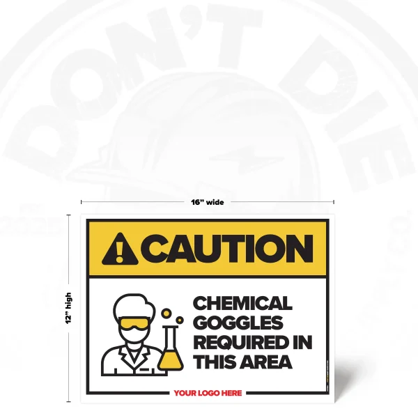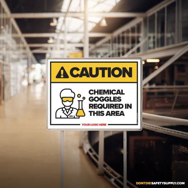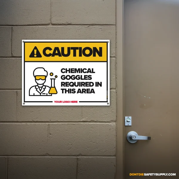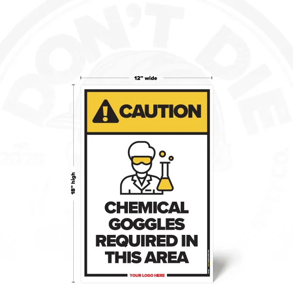 CHEMICAL GOGGLES REQUIRED. Chemical Goggles Required isn’t a suggestion – it’s a warning people need before the wrong moment happens. That’s why this sign exists – to make the expectation obvious before someone pretends they didn’t know.