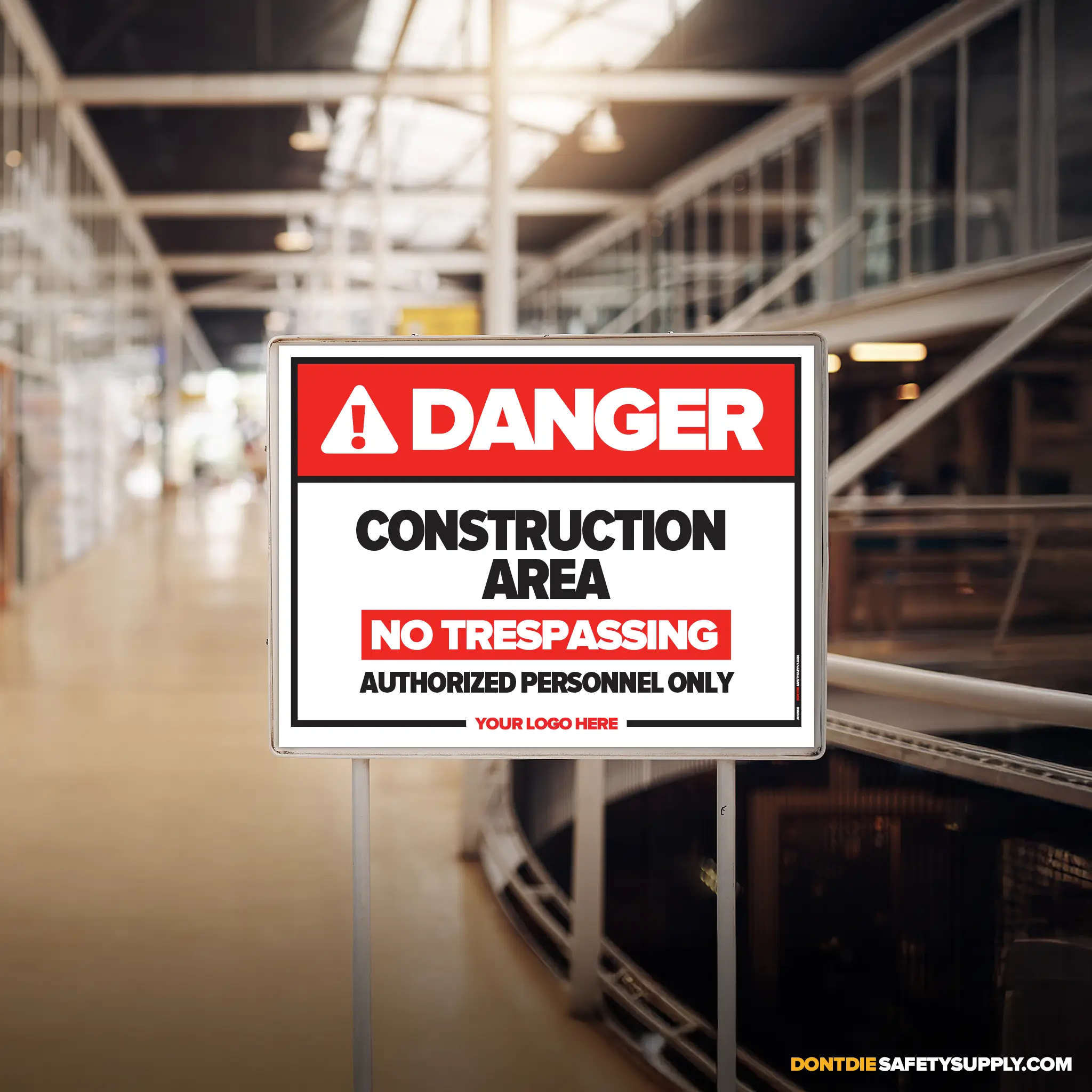 WHAT’S ABOVE YOU CAN KILL YOU. Construction Area No Trespassing exists because relying on memory in a workplace is how accidents start. That’s why this sign exists – to stop mistakes before they become injuries, damage, or downtime.