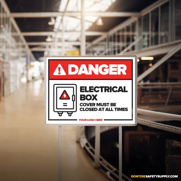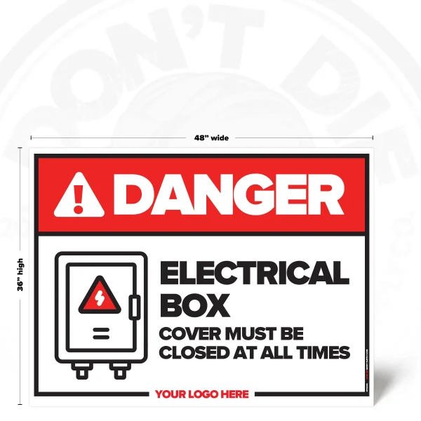 ELECTRICAL BOX COVERS MUST BE. Electrical Box Covers Must Be isn’t a suggestion – it’s a warning people need before the wrong moment happens. That’s why this sign exists – to get the message seen early, not after the incident report.