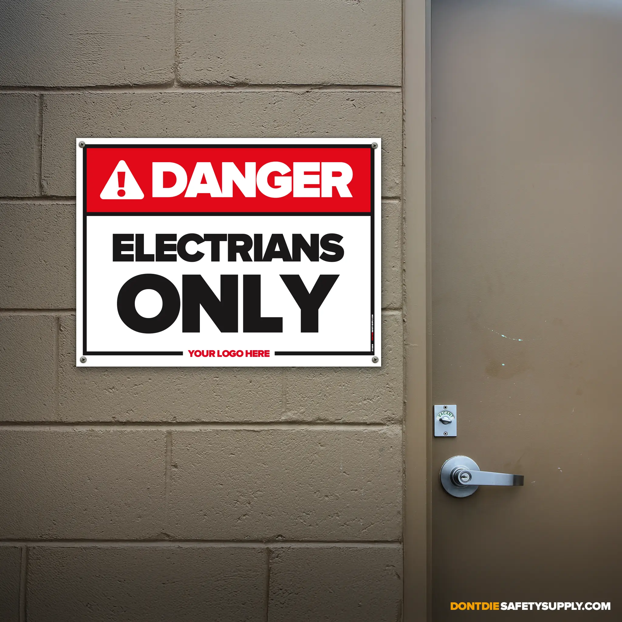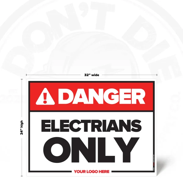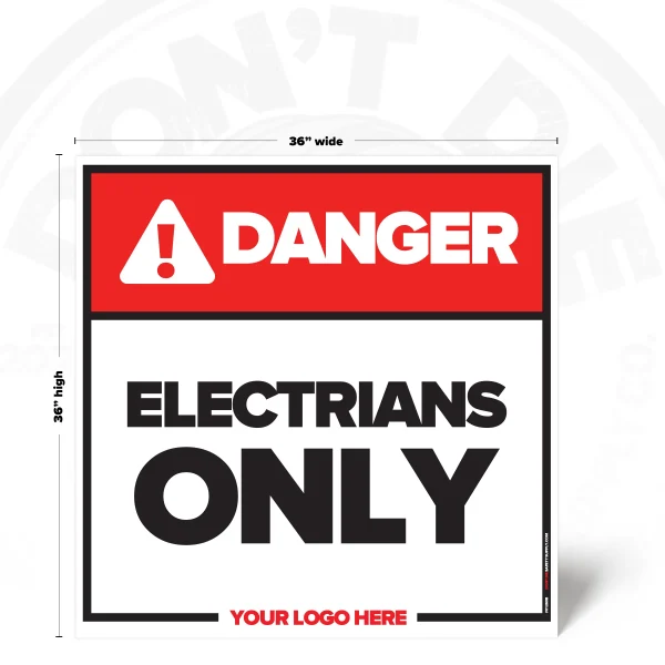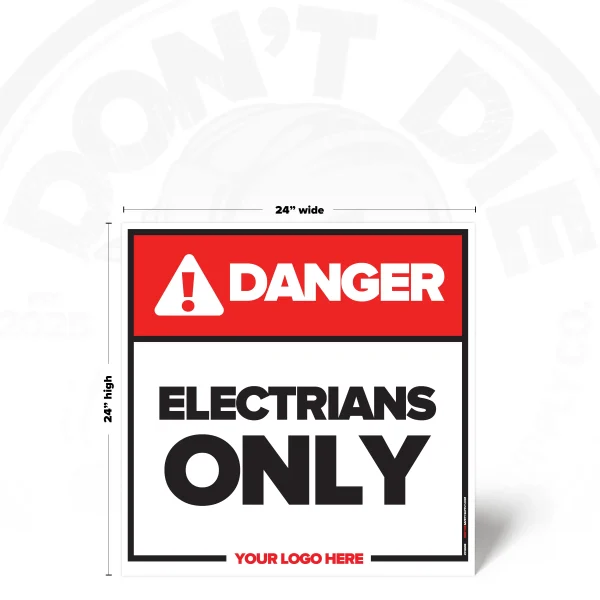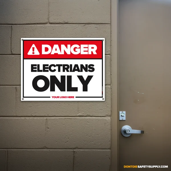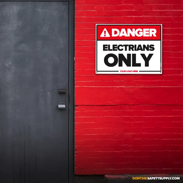 ELECTRICIANS ONLY. Electricians Only exists because relying on memory in a workplace is how accidents start. That’s why this sign exists – to make the instruction clear before someone tests their luck.