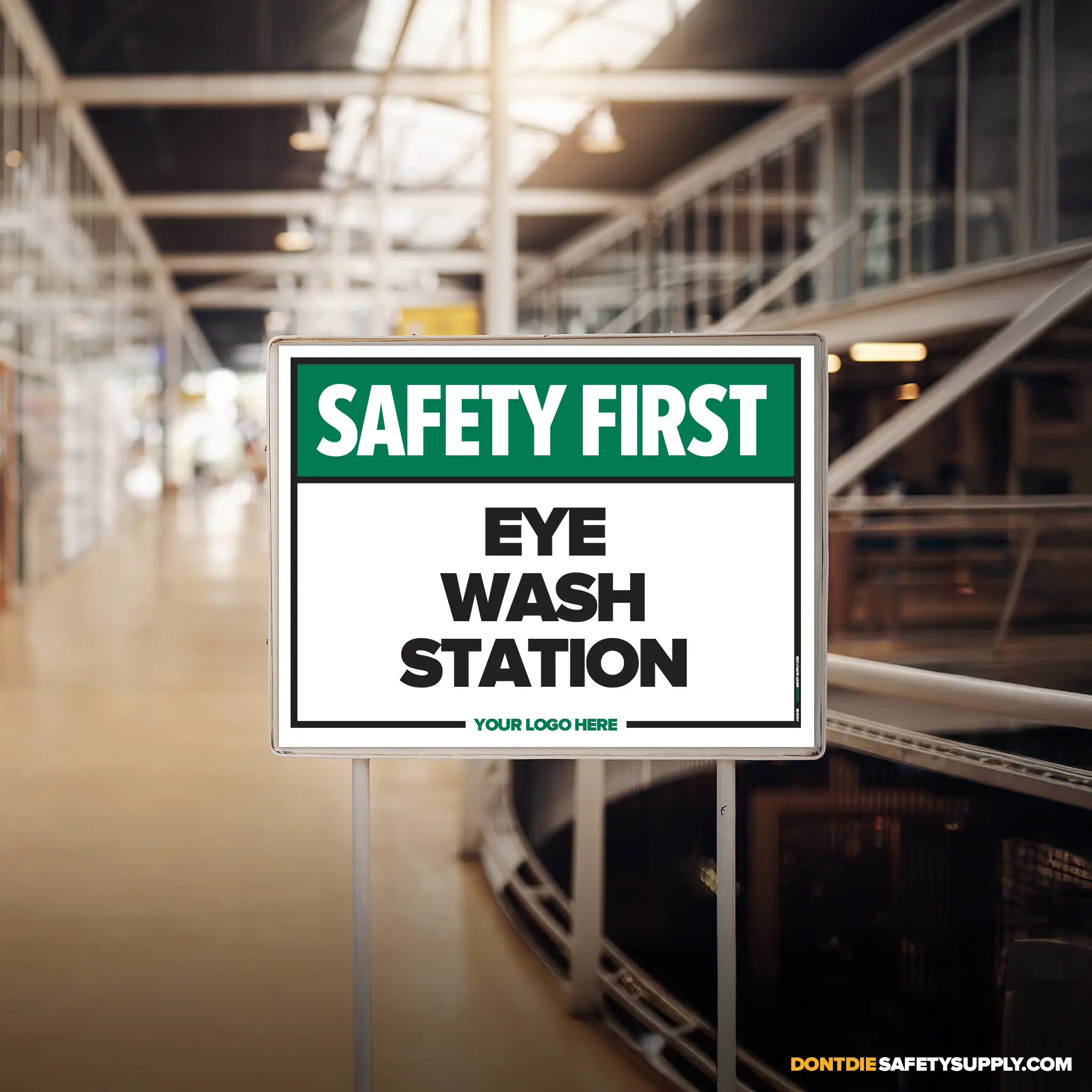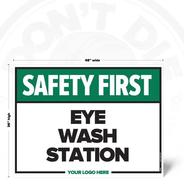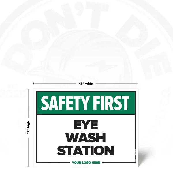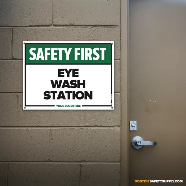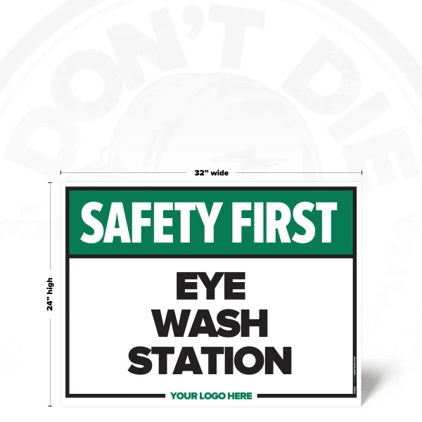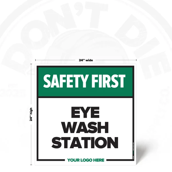The EYE WASH STATION SAFETY SIGH provides clear, consistent instruction in locations where this requirement or notice applies. It helps reduce ambiguity by stating expectations plainly and consistently.