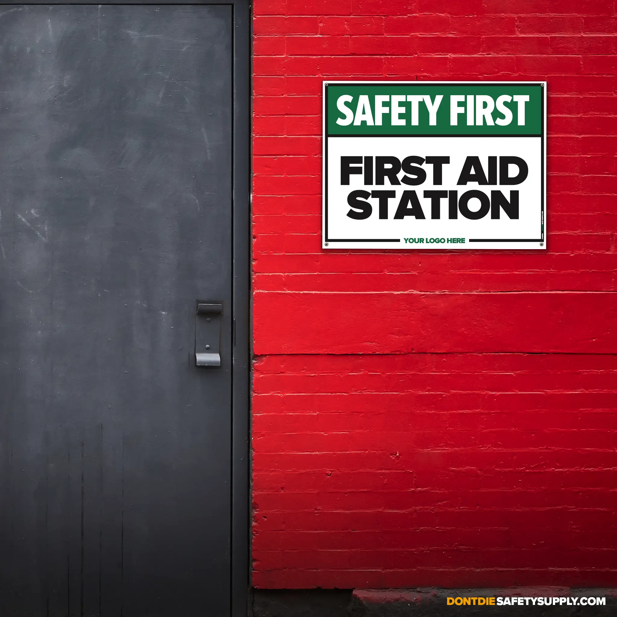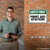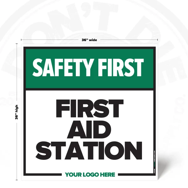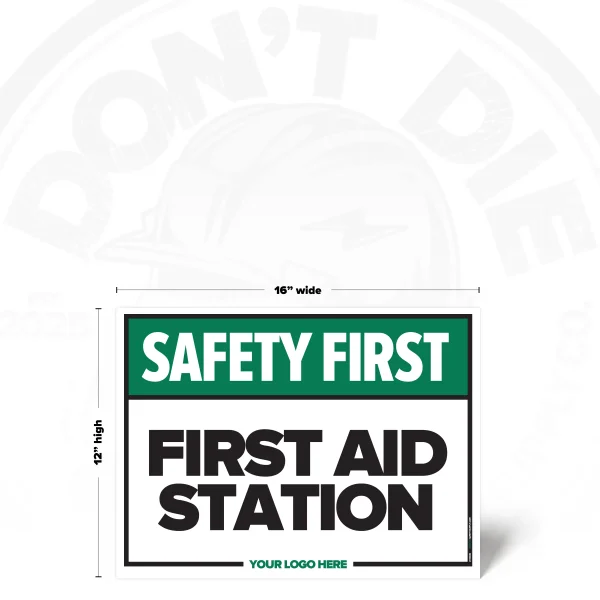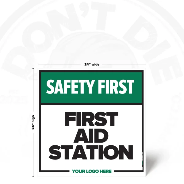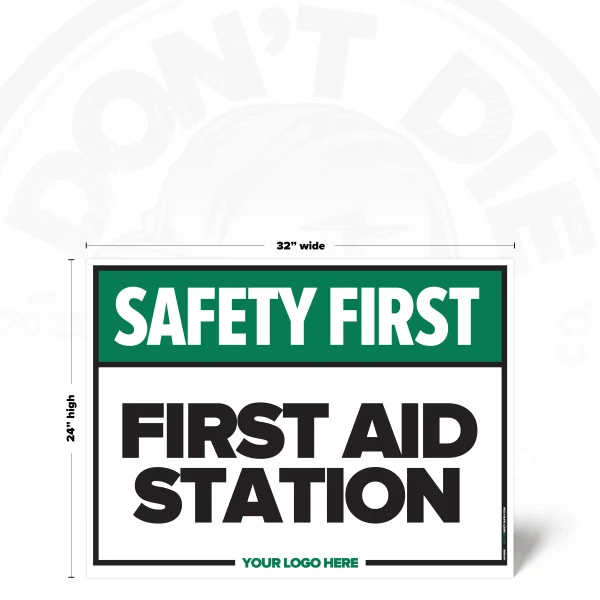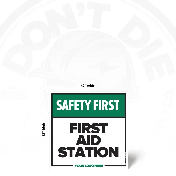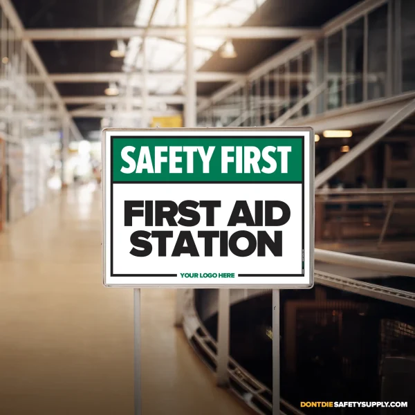 FIRST AID STATION. First Aid Station exists because relying on memory in a workplace is how accidents start. That’s why this sign exists – to make the instruction clear before someone tests their luck.