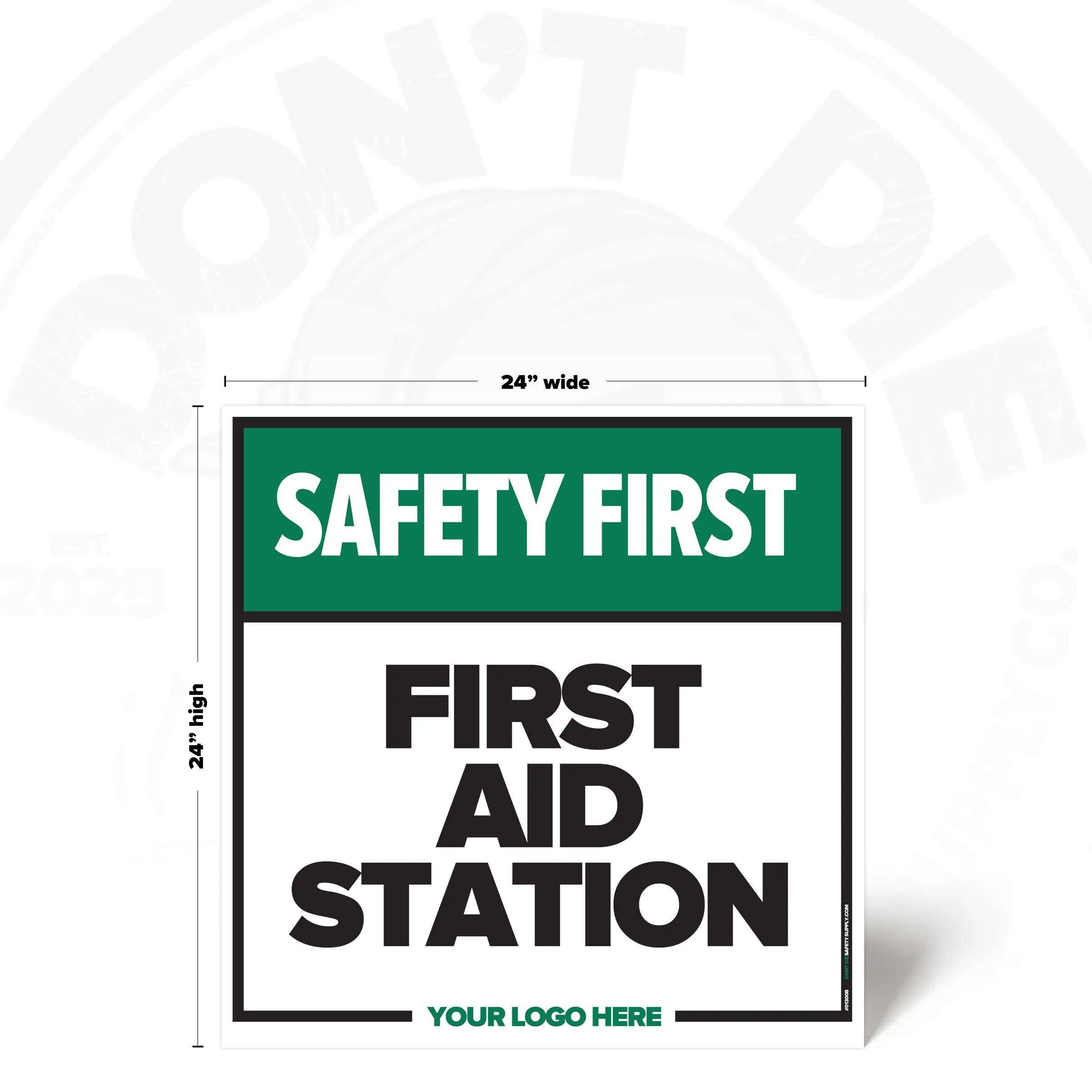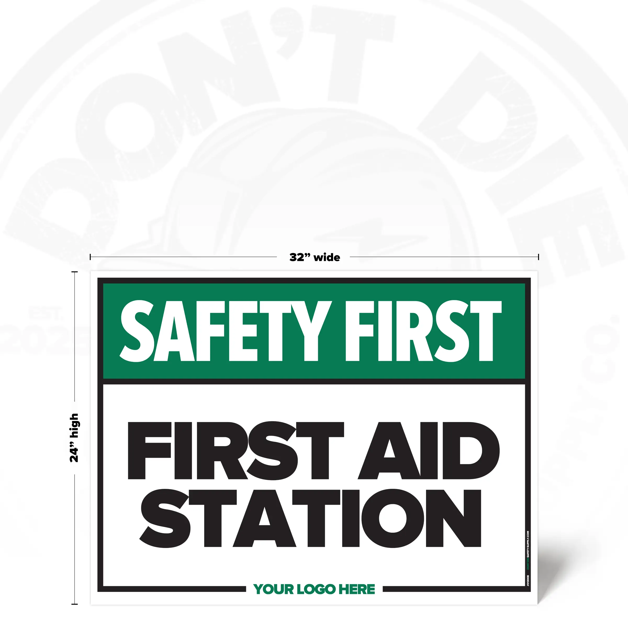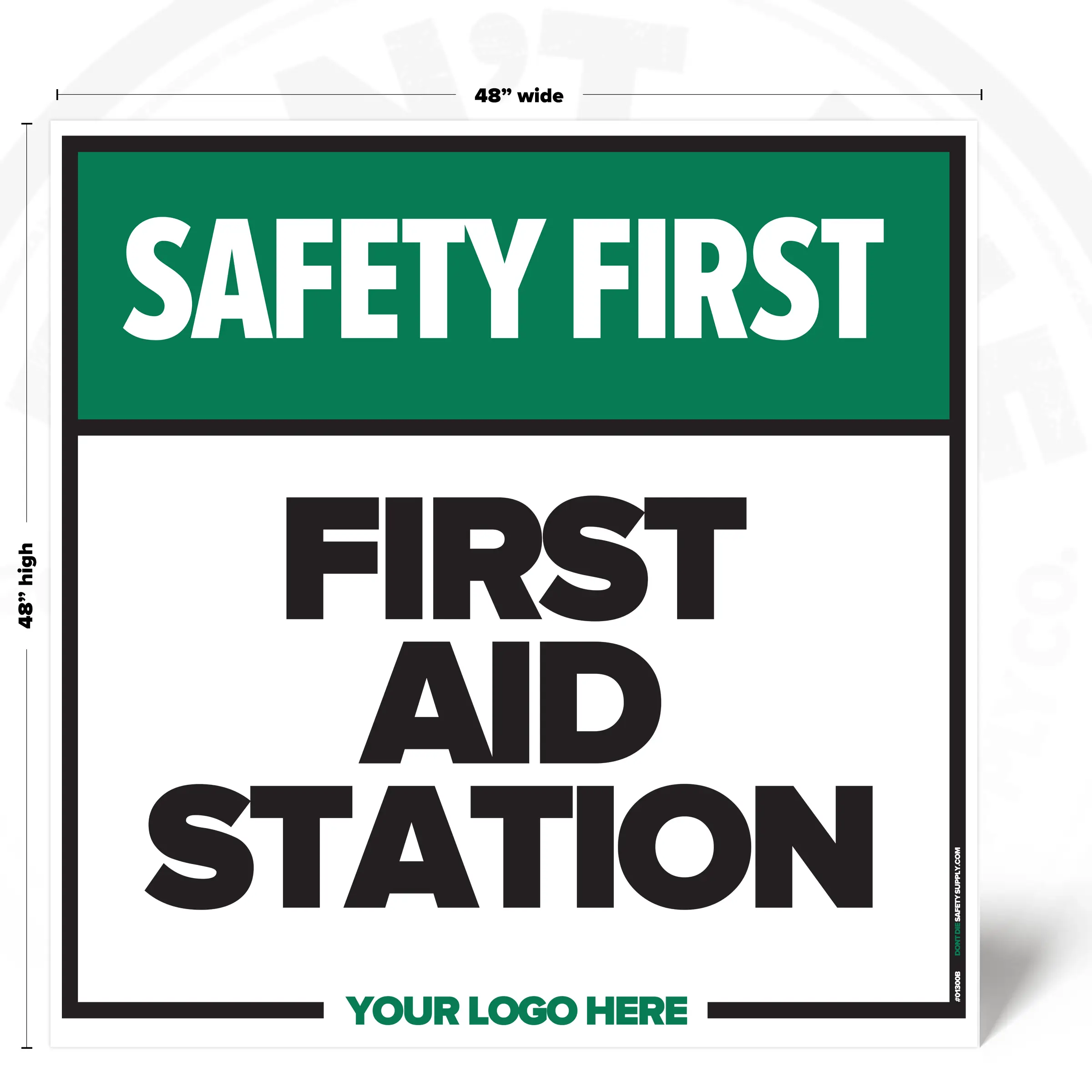 The FIRST AID STATION SAFETY SIGH provides clear, consistent instruction in locations where this requirement or notice applies. It helps reduce ambiguity by stating expectations plainly and consistently.