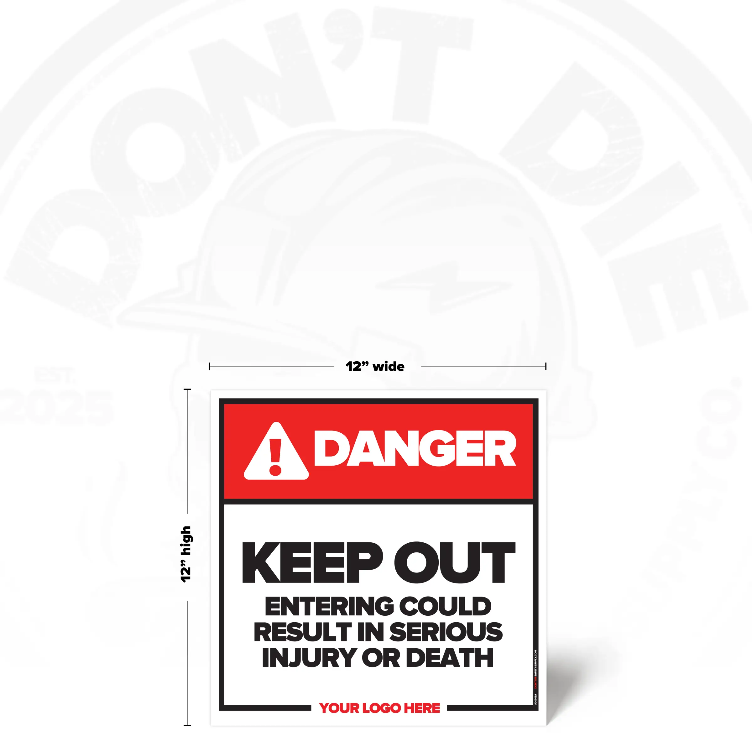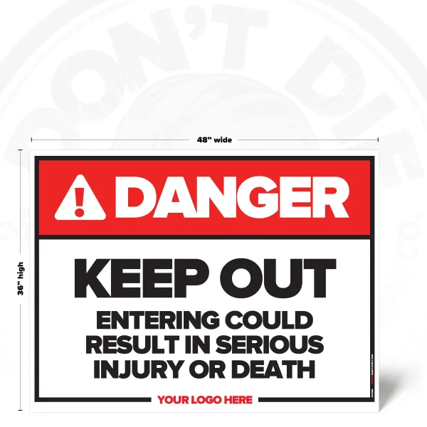 The KEEP OUT INJURY OR DEATH SAFETY SIGN provides clear, consistent instruction in locations where this requirement or notice applies. It helps reduce ambiguity by stating expectations plainly and consistently.