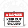 Keep Out Injury or Death Safety Sign