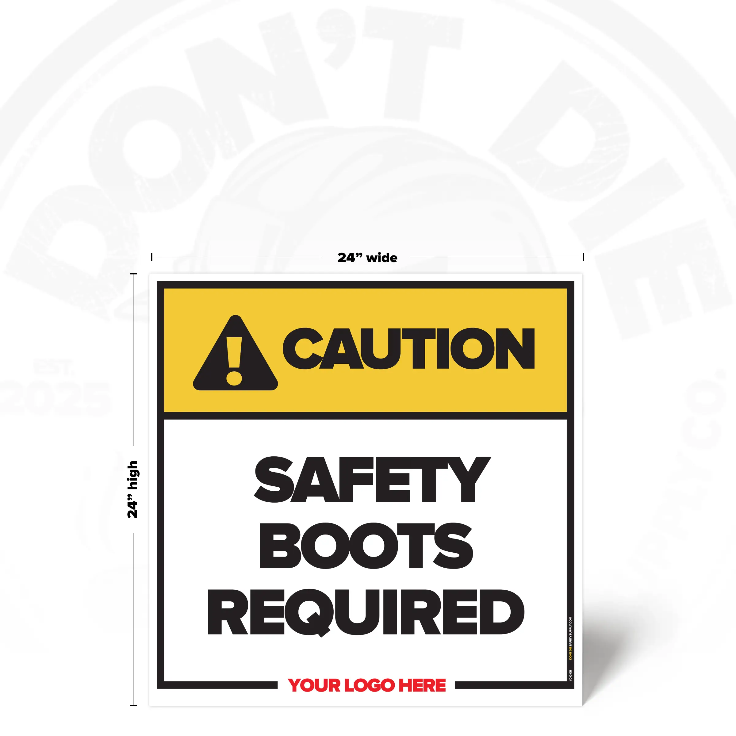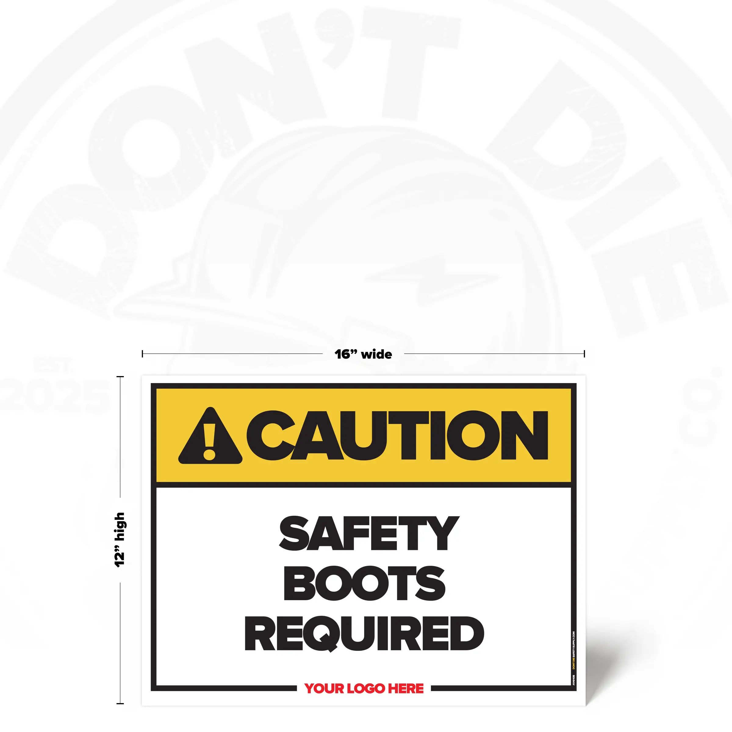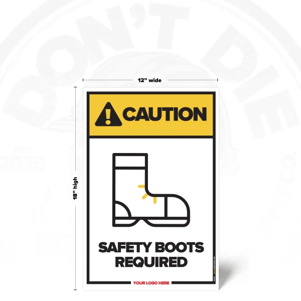 The SAFETY BOOTS REQUIRED SAFETY SIGN is built for real work environments where hazards are present, visibility can be compromised, and assuming “I’ll be fine” is how injuries happen. It calls out the risk clearly and unapologetically, so there’s no confusion about what’s required before someone steps into danger.
