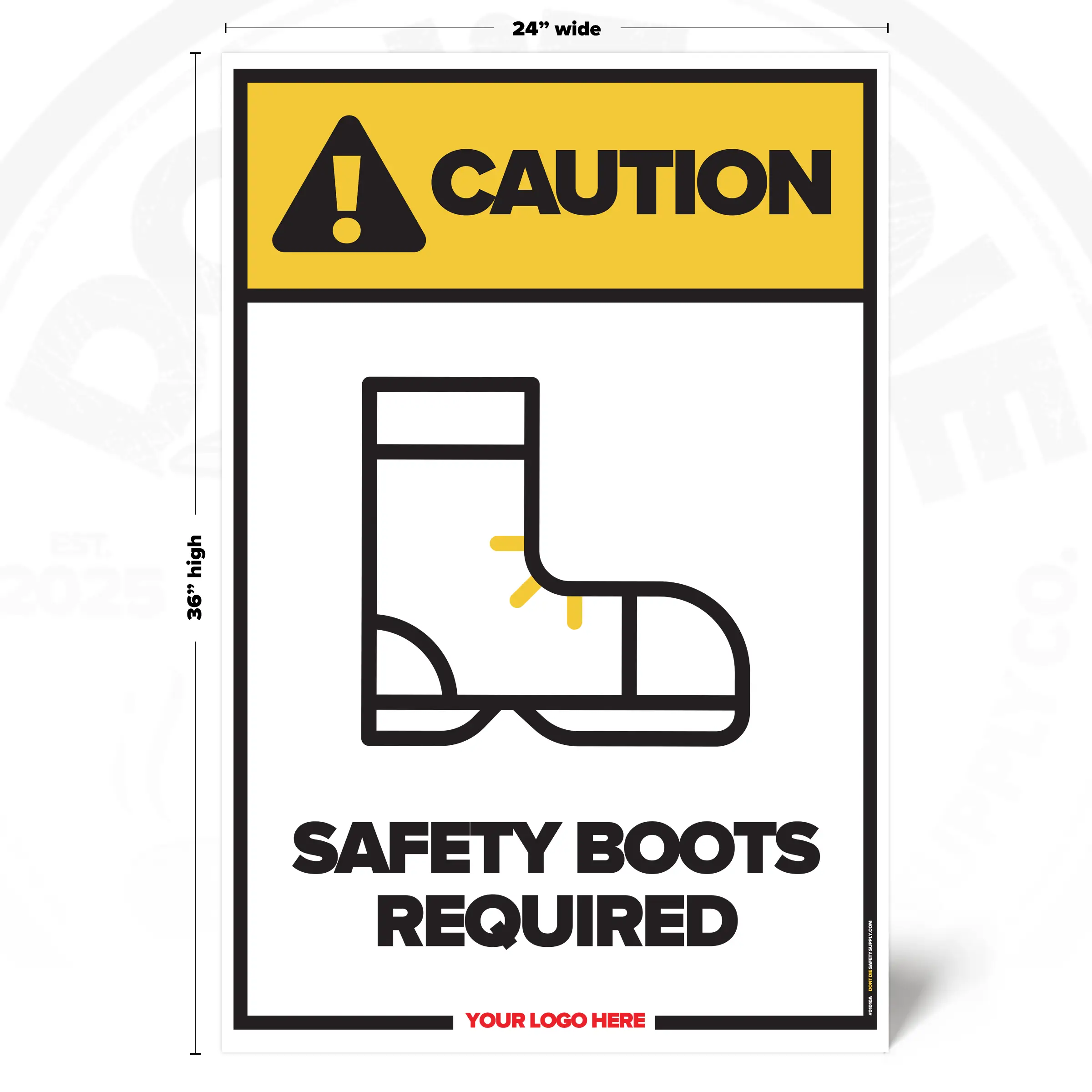 The SAFETY BOOTS REQUIRED SAFETY SIGN is designed to provide clear, consistent visual guidance in environments where this message applies. It supports safer behavior by keeping the instruction visible in day-to-day operations.