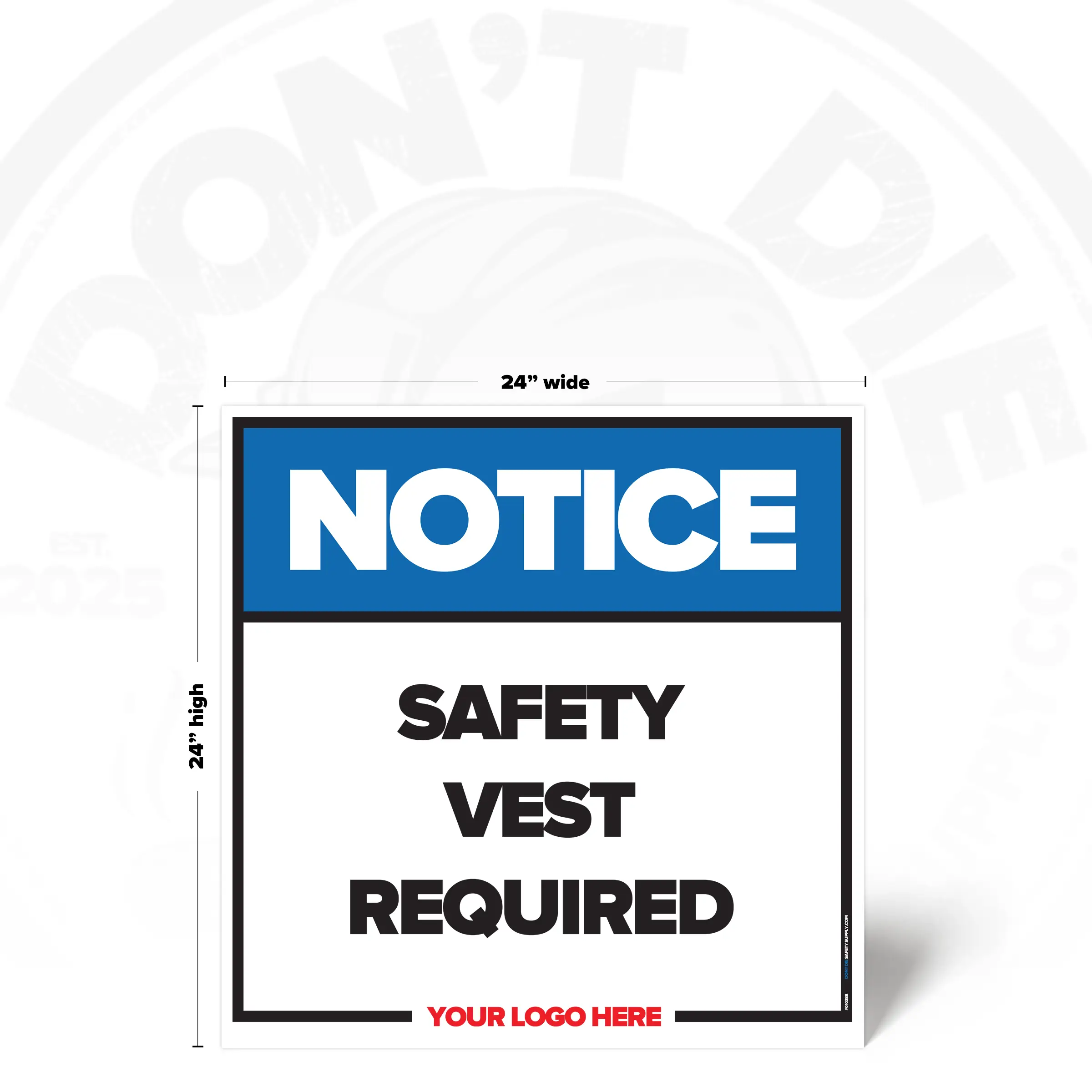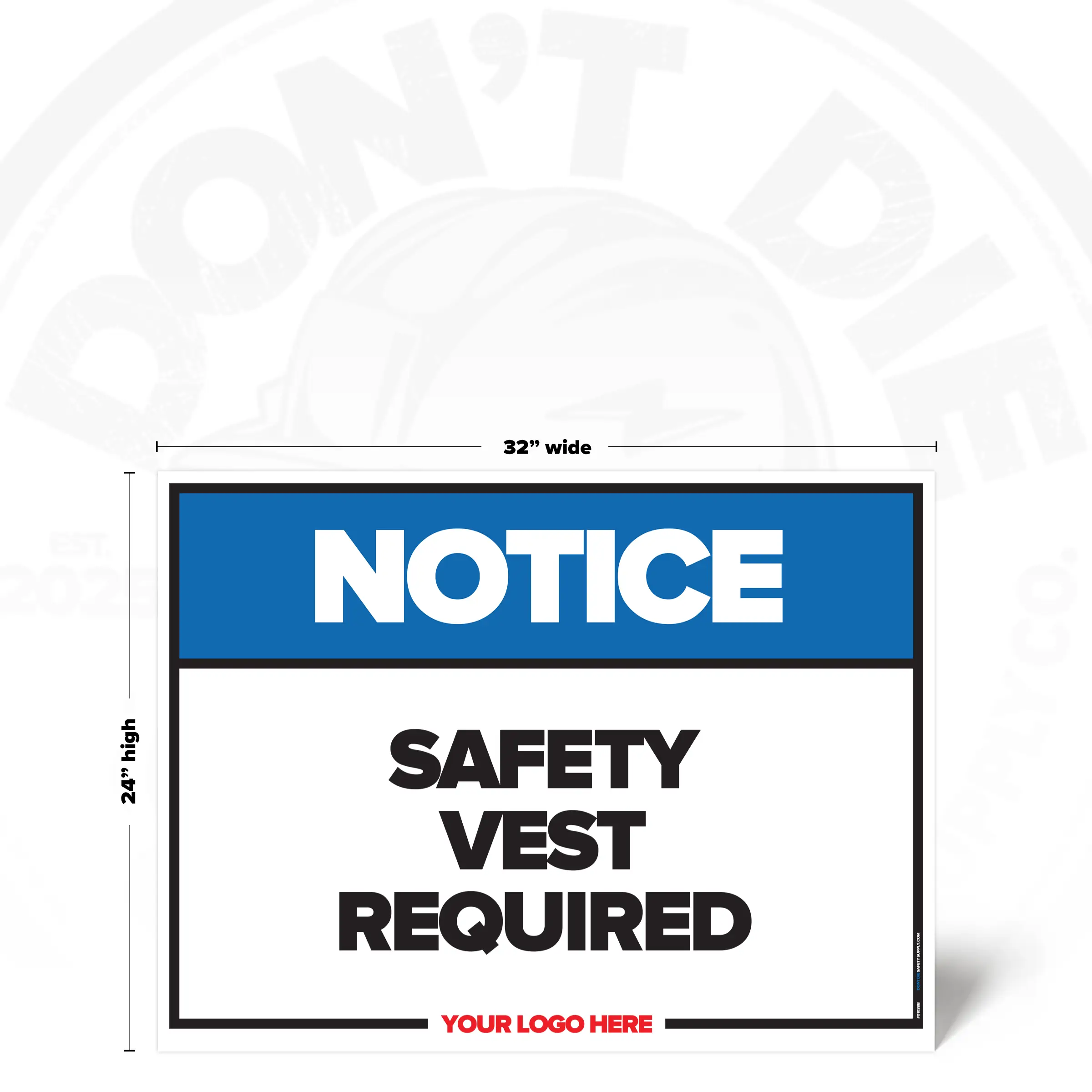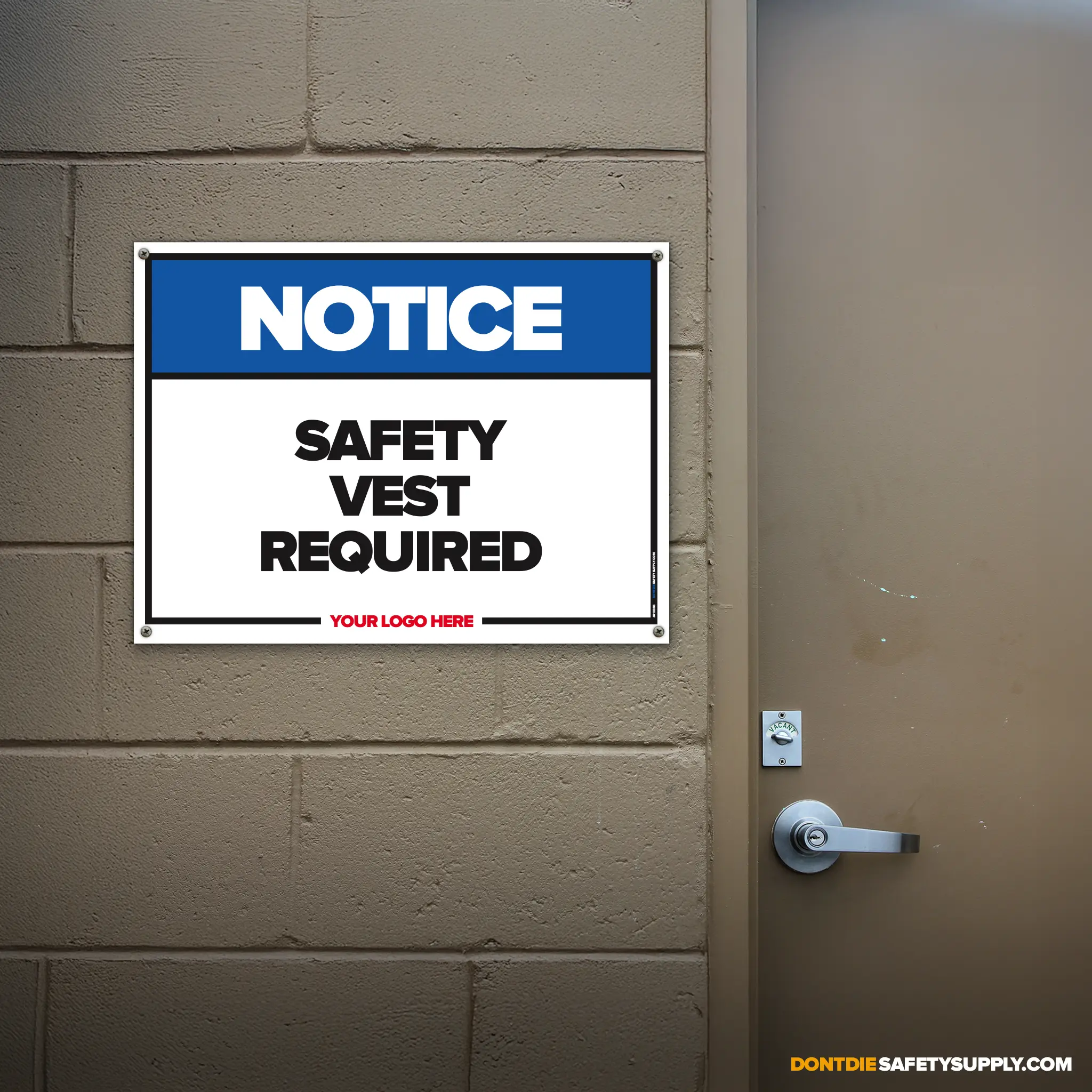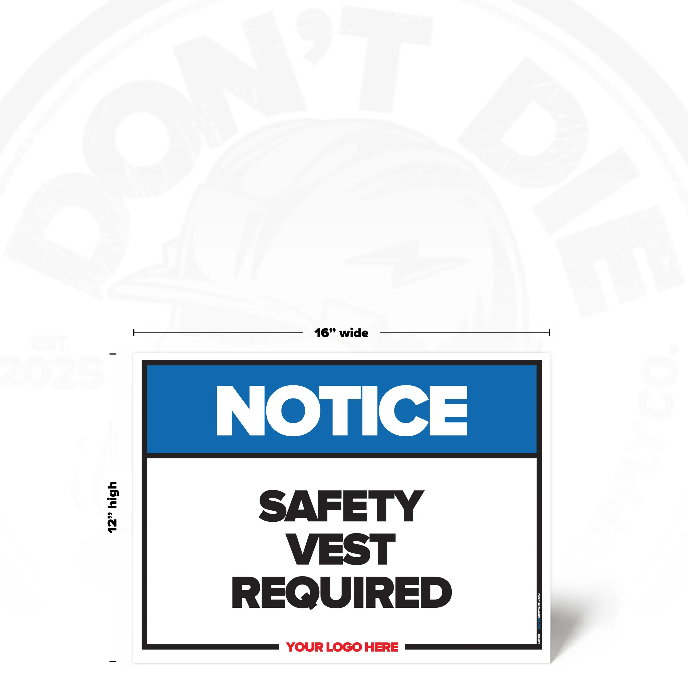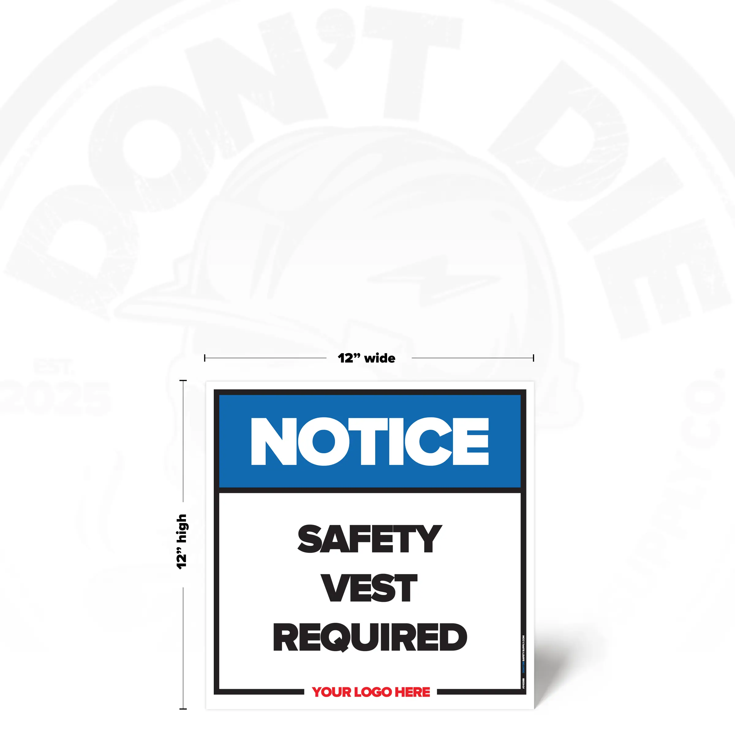 The SAFETY VEST REQUIRED SAFETY SIGN provides clear, consistent instruction in locations where this requirement or notice applies. It helps reduce ambiguity by stating expectations plainly and consistently.