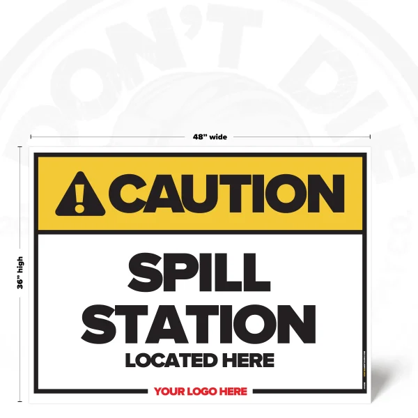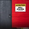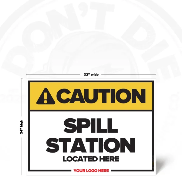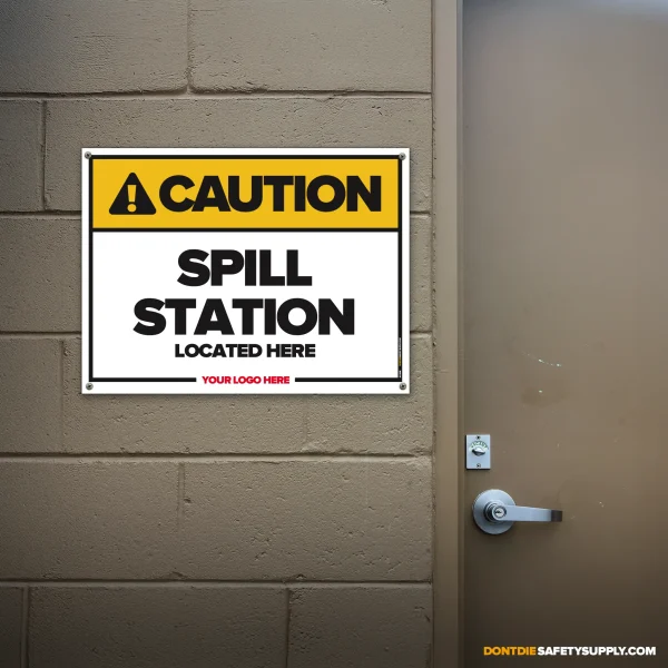 SPILL STATION LOCATED HERE. Spill Station Located Here exists because relying on memory in a workplace is how accidents start. That’s why this sign exists – to stop mistakes before they become injuries, damage, or downtime.