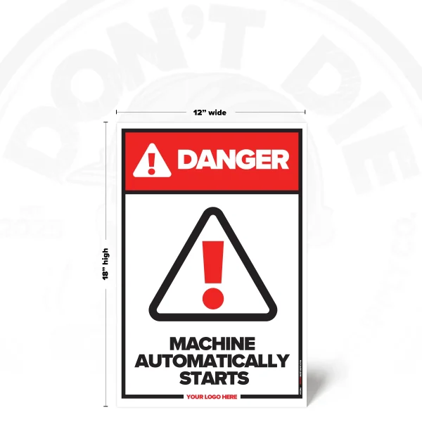 The STARTS AUTOMATICALLY SAFETY SIGN is built for busy work zones where hazards are present, visibility can be compromised, and assuming “I’ll be fine” is how injuries happen. It calls out the risk clearly and unapologetically, so there’s no confusion about what’s required before someone steps into danger.
