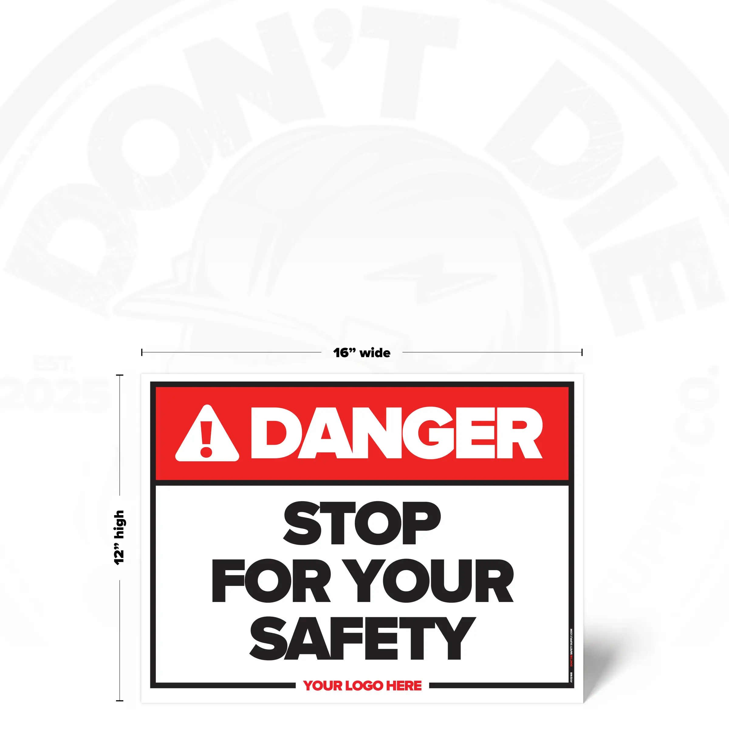 The STOP FOR YOUR SAFETY SIGN provides clear, consistent instruction in locations where this requirement or notice applies. It helps reduce ambiguity by stating expectations plainly and consistently.