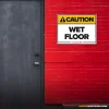 FLOORS DON’T CARE IF YOU’RE IN A RUSH. Slips happen faster than reactions, especially when floors are wet and people rush. That’s why this sign exists – to make the instruction clear before someone tests their luck.