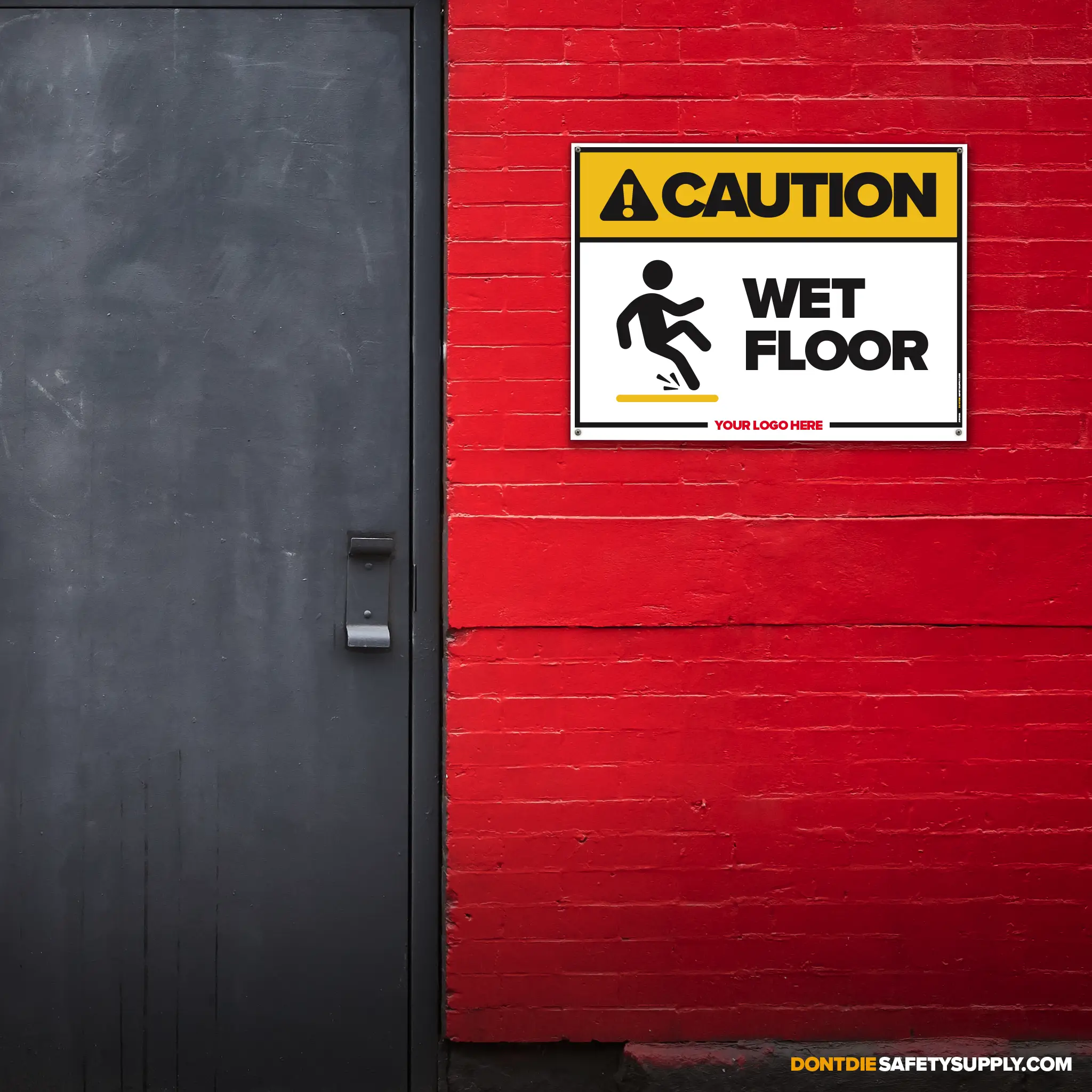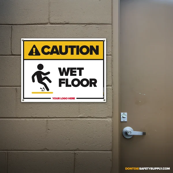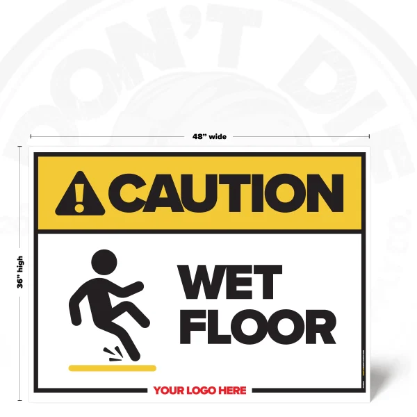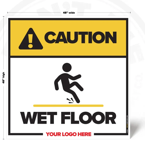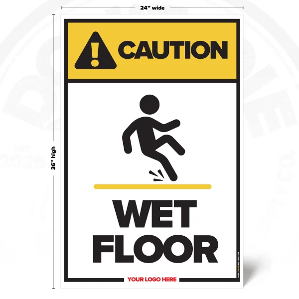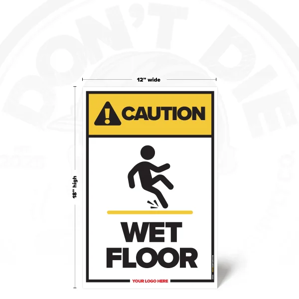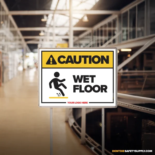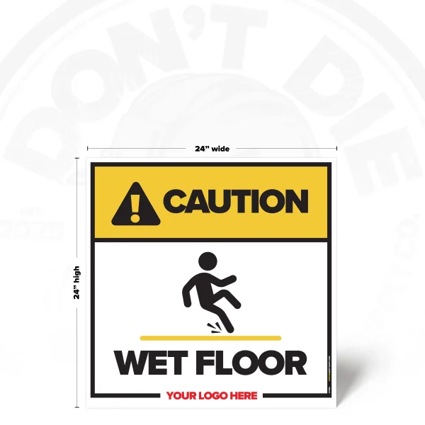 FLOORS DON’T CARE IF YOU’RE IN A RUSH. Wet surfaces turn normal steps into sudden falls, injuries, and busted pride. That’s why this sign exists – to get the message seen early, not after the incident report.