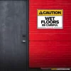FLOORS DON’T CARE IF YOU’RE IN A RUSH. Slips happen faster than reactions, especially when floors are wet and people rush. That’s why this sign exists – to stop mistakes before they become injuries, damage, or downtime.